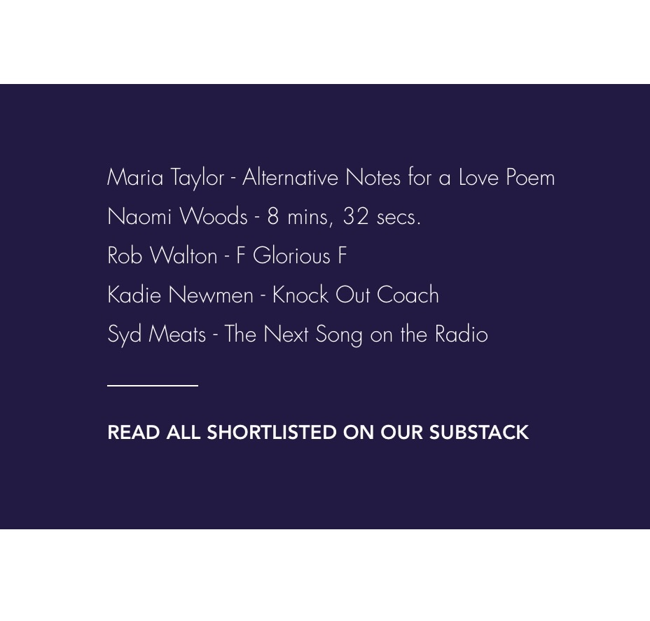 You can read the winning poem and all the shortlisted poems on Verve’s Substack.